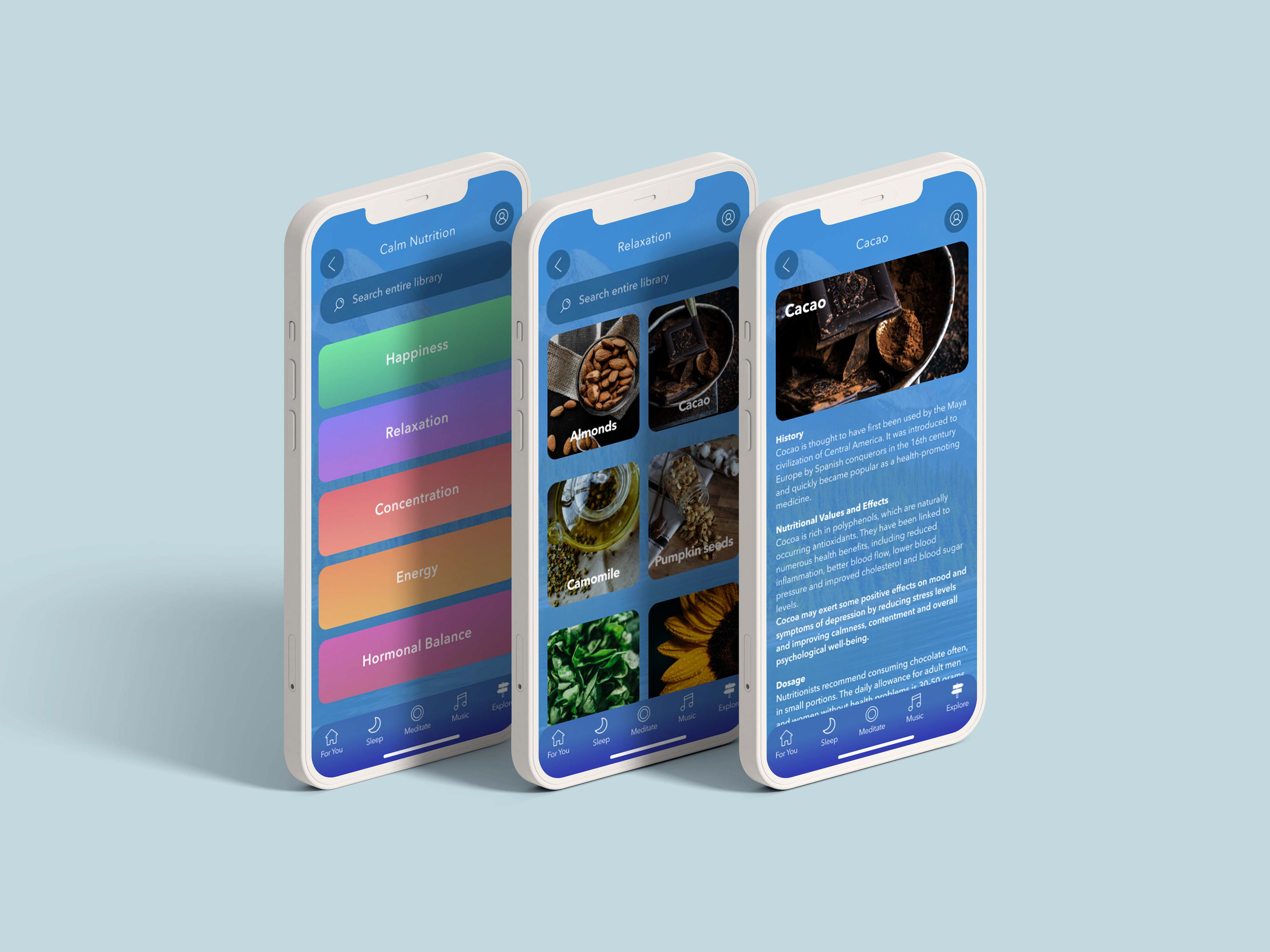 Before jumping into designing a high-fidelity prototype we focused on defining the particular style to our applications. We began with creating moodboards and chose the one, that would fit our brand attributes, which are: soft, soothing, lean, supportive and calm. This helped avoid misdirections and was used as a guide for the UI.